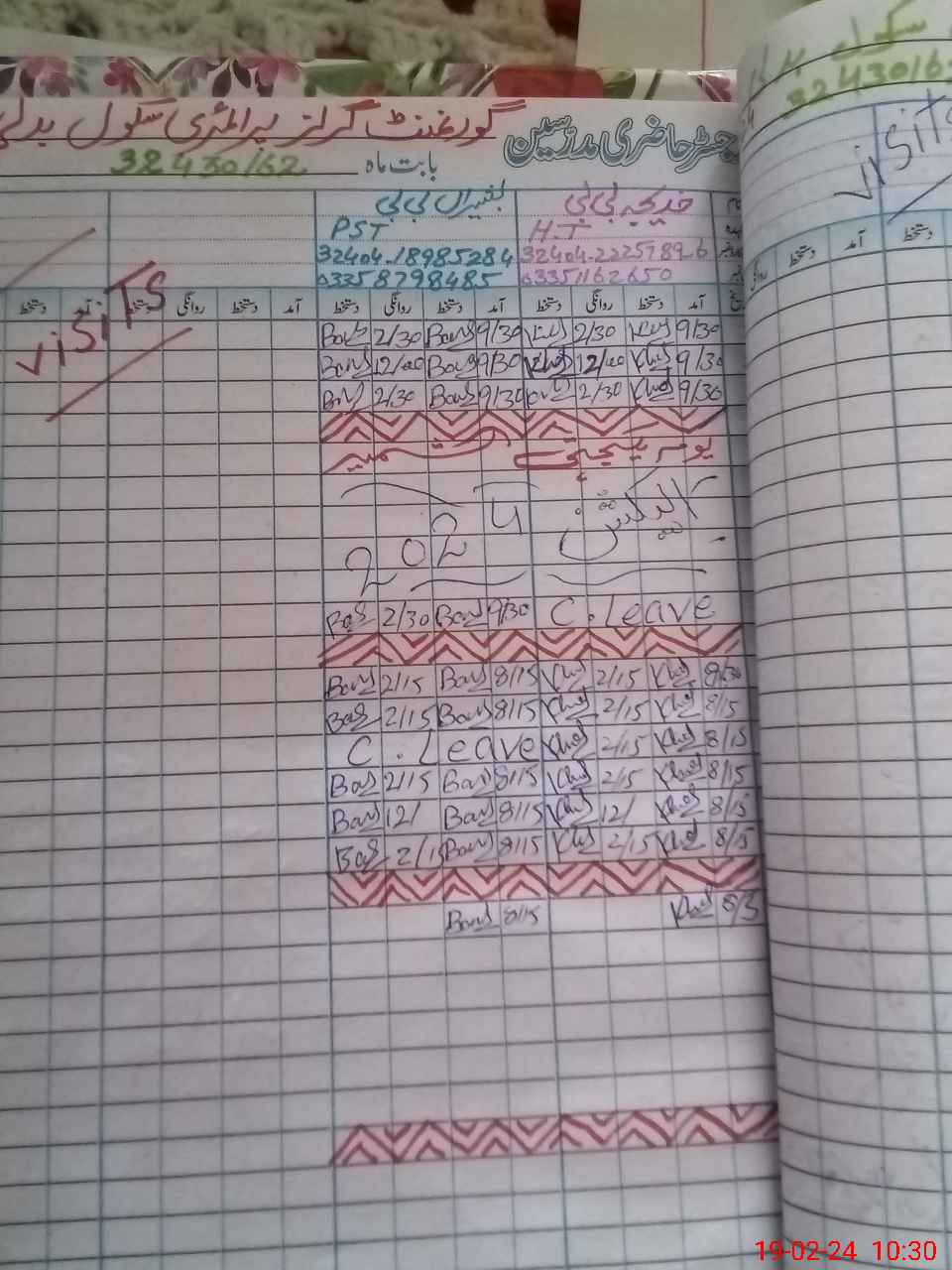 | Name: Kh**** Bi**** Designation: (School Headmaster's/Headmistress's) PST Head Phone/Cell Number: 03**** |