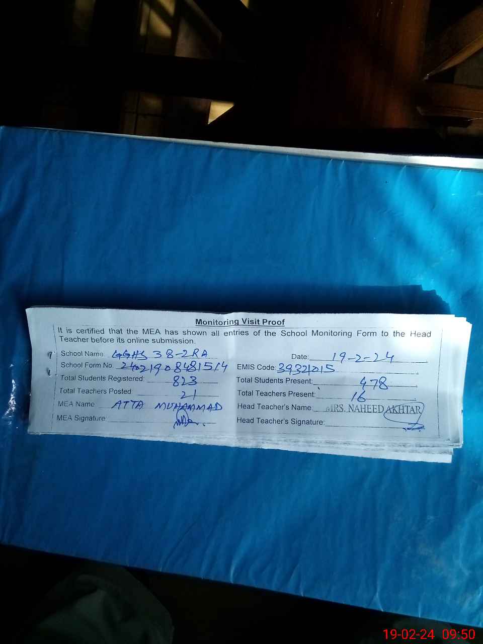 | EMIS Code: 39321015 | Name of School: GGHS CHAK NO. 38/2-RA | |||