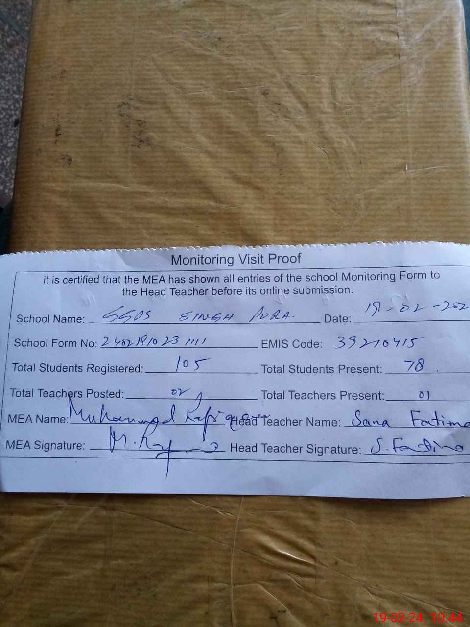 | EMIS Code: 39210415 | Name of School: GGPS SINGH PURA | |||