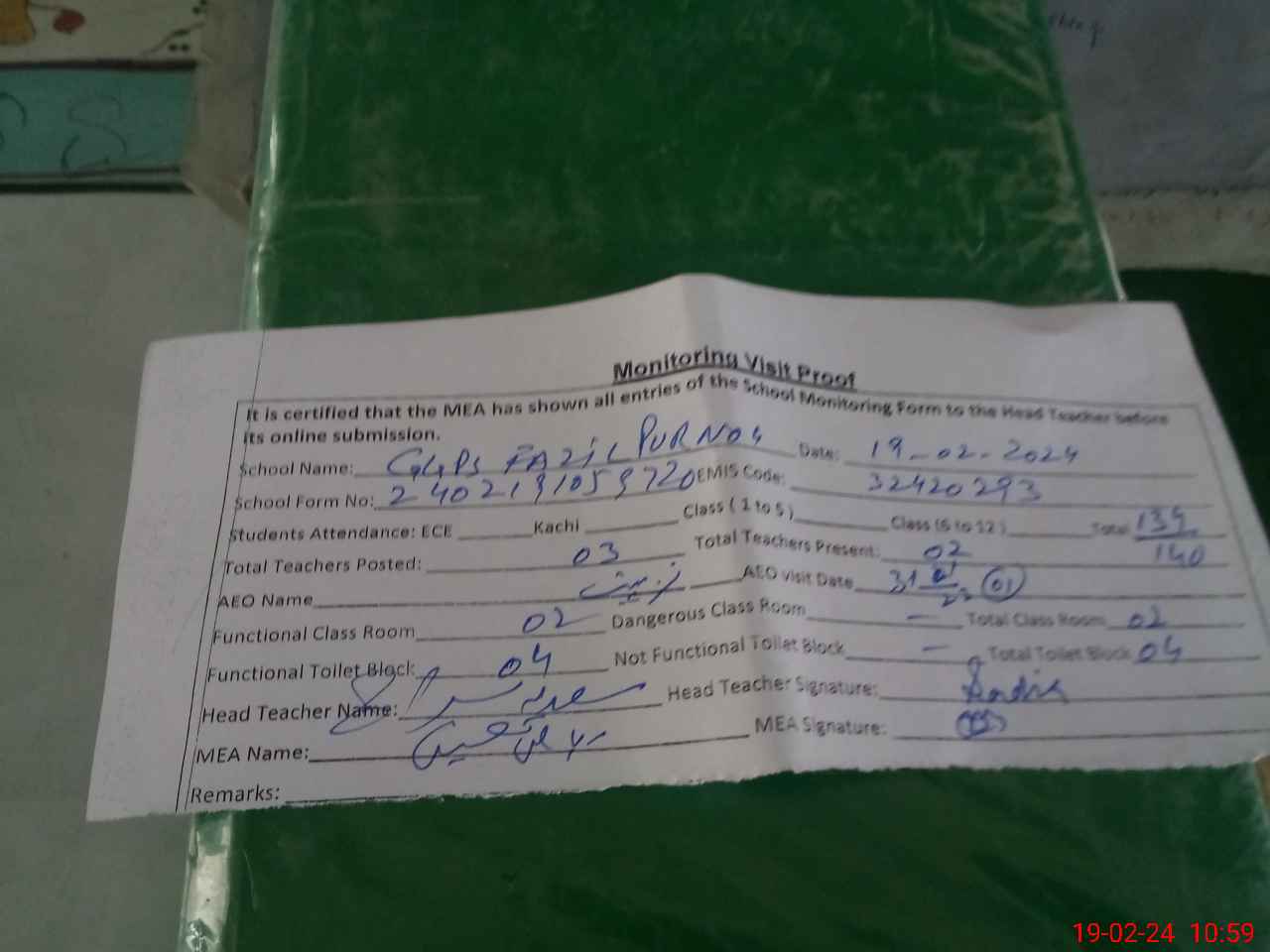 | EMIS Code: 32420293 | Name of School: GGPS FAZILPUR NO. 4 | |||