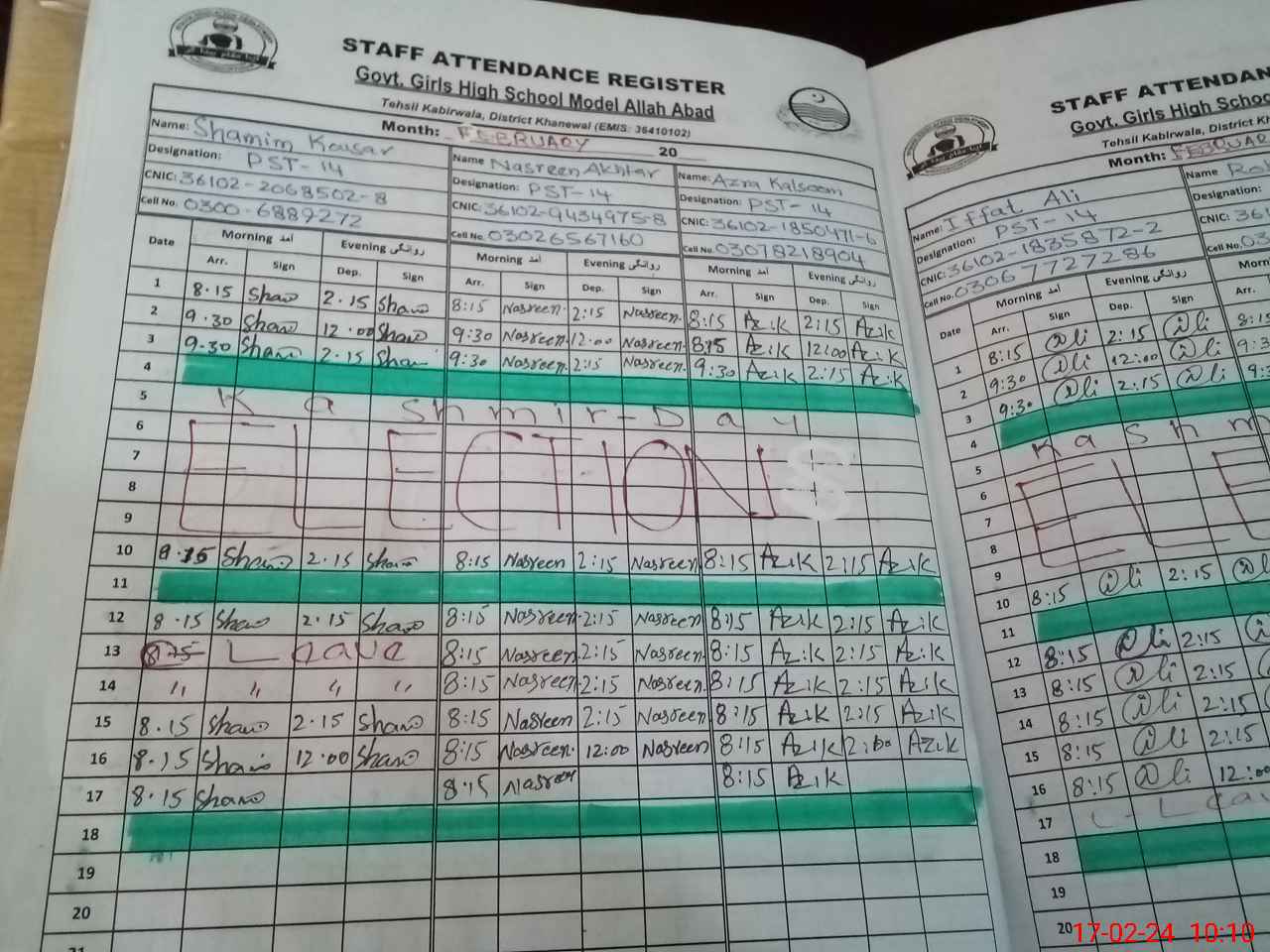 | CNIC | Full Name | Designation | R/C | Absence During Last Calender Month |