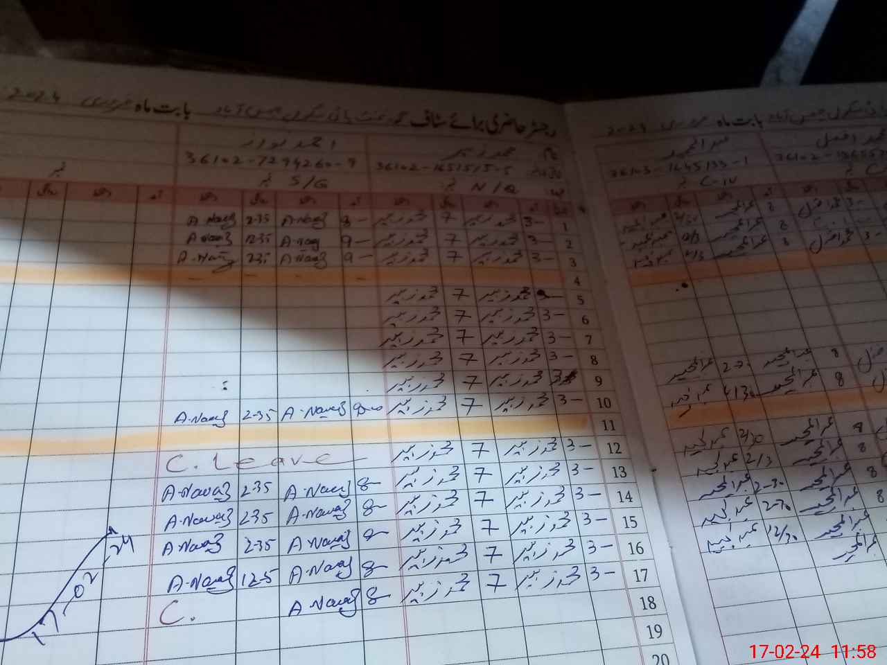 | CNIC | Full Name | Designation | R/C | Absence during last cal. month |