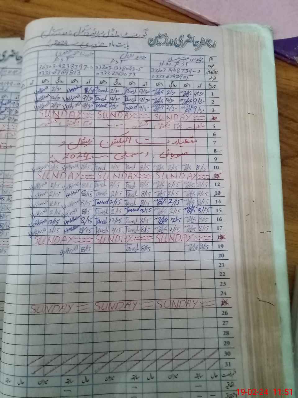 | Name: MU**** AL**** Designation: (School Headmaster's/Headmistress's) PST Phone/Cell Number: 03**** |