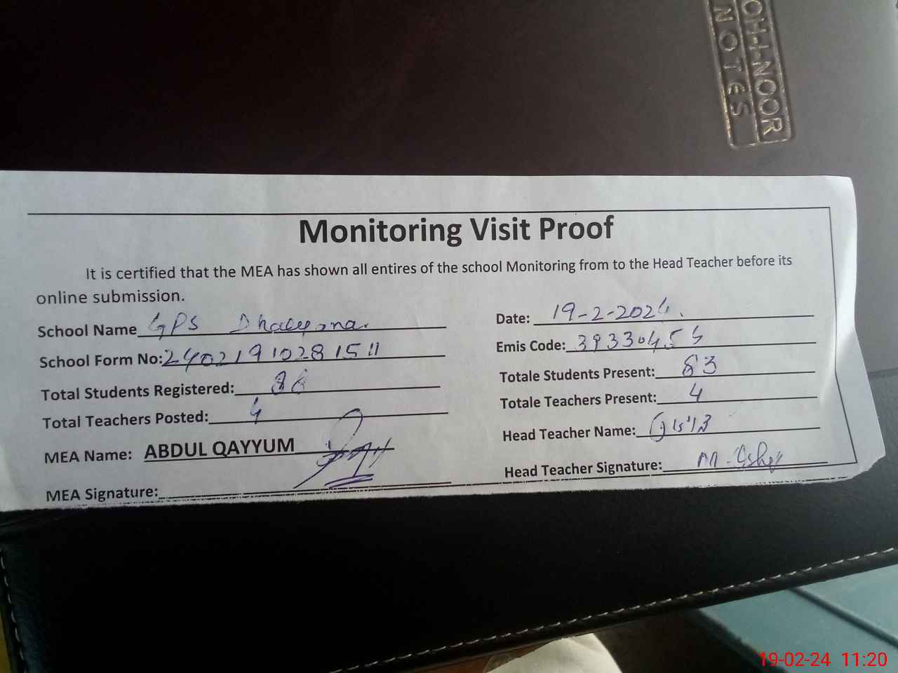 | EMIS Code: 39330454 | Name of School: GPS DHULYANA | |||