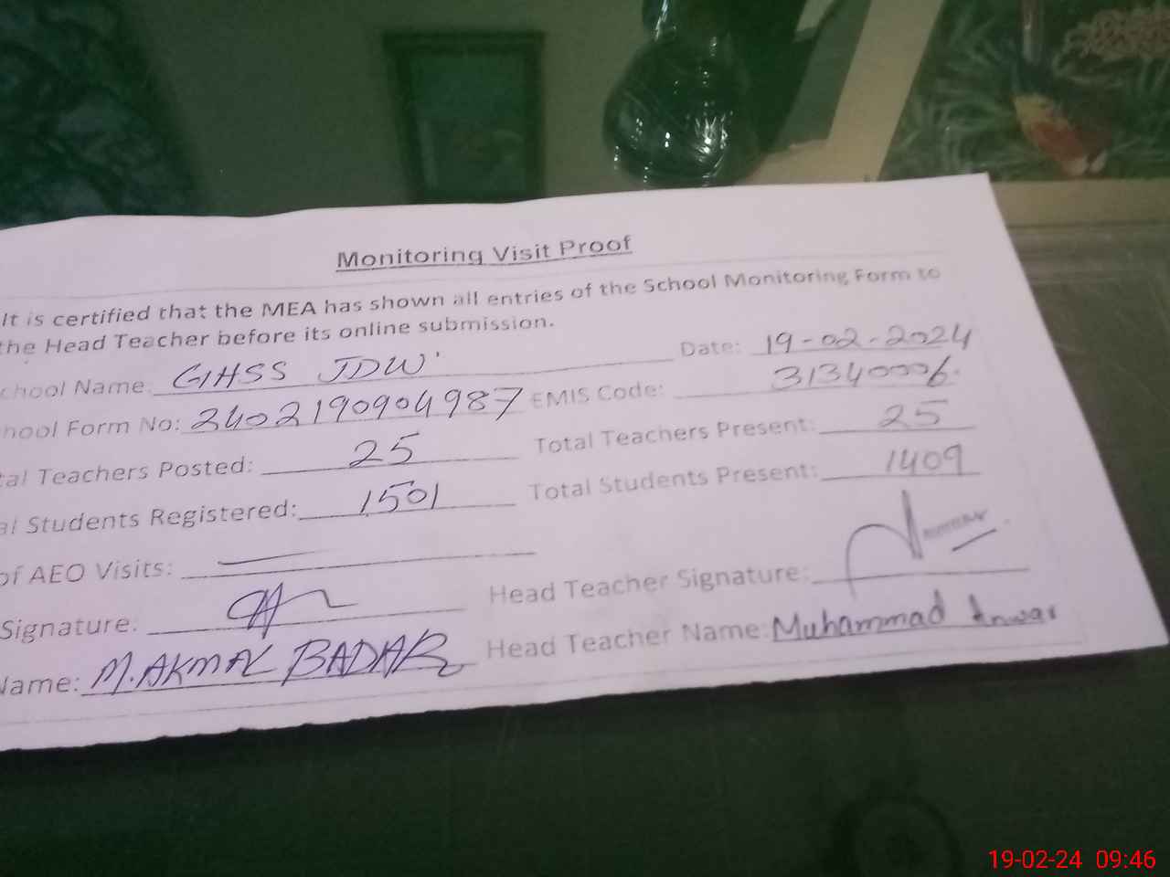 | Certified that this School was Inspected by the Undersigned MEA/DMO Today and the Information Stated Above is as Per Record. | |||||