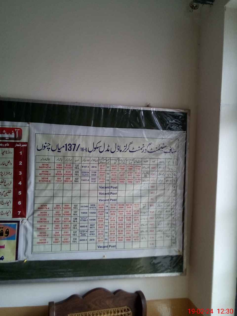 | Name: ZA**** KO**** Designation: (School Headmaster's/Headmistress's) S.S.T.(Arts) Phone/Cell Number: 03**** |