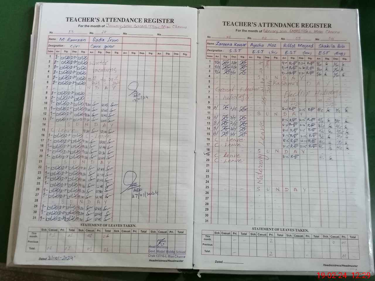 | 36**** | Ay**** Na**** | 3 | 1 | 0 | 0 | 0 | 0 | 0 | 0 | 0 | 0 | 0 | Maternity |