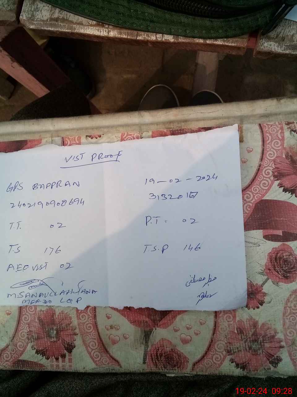 | Monitoring Date: 19-02-2024 | Start Time: 19-02-2024 09:07 AM | End Time: 19-02-2024 09:28 AM | Name of MEA: Mu**** Sa**** Ul**** Sa**** | |