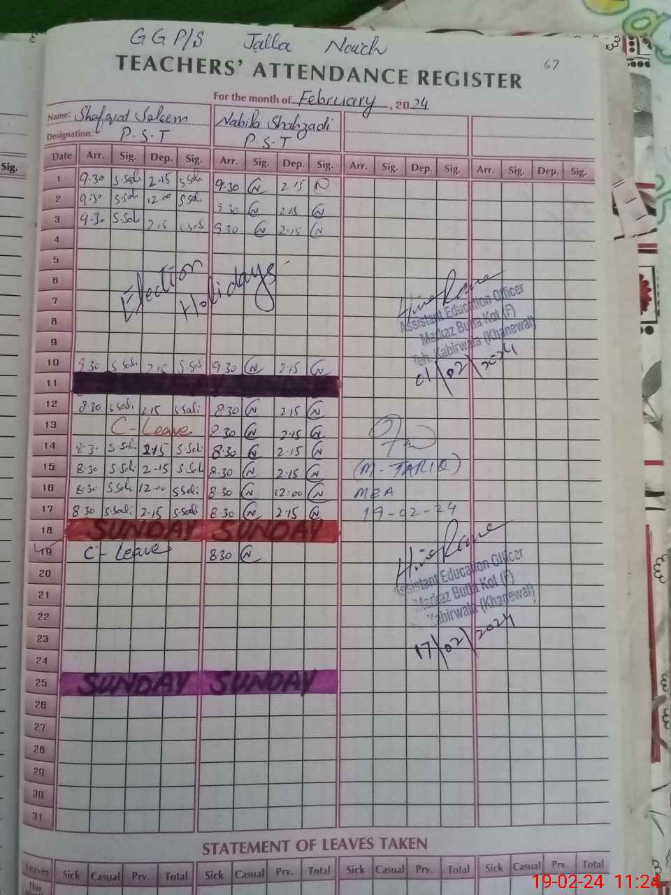 | Name: SH**** SA**** Designation: (School Headmaster's/Headmistress's) PST Phone/Cell Number: 03**** |
