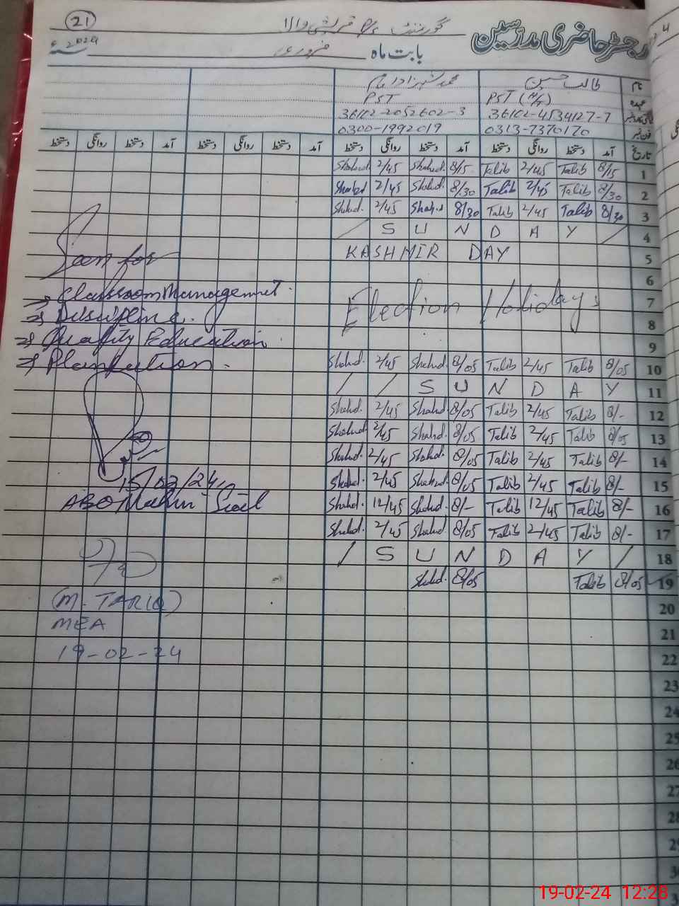 | Name: Ta**** Hu**** Designation: (School Headmaster's/Headmistress's) PST Phone/Cell Number: 03**** |