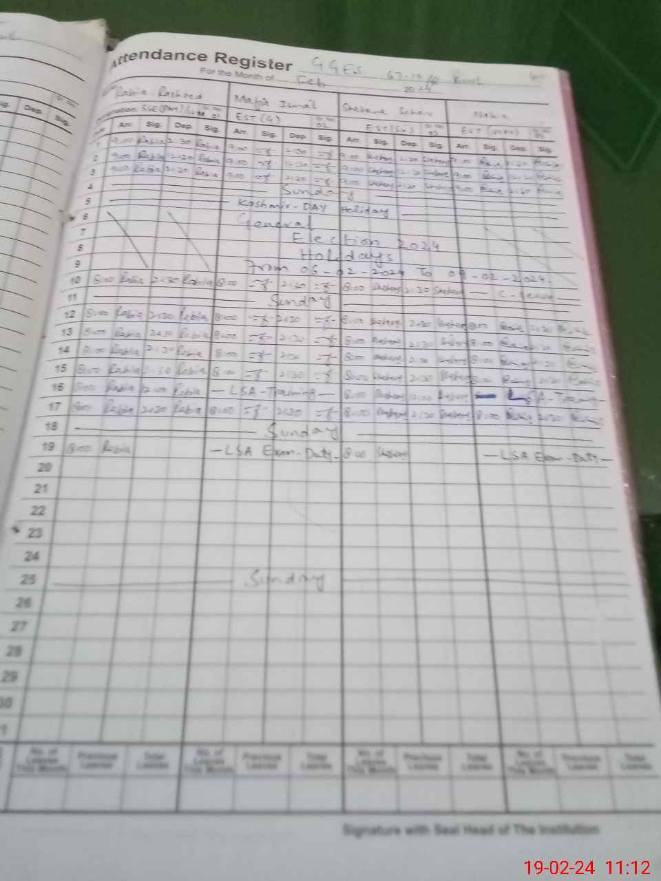 | 33**** | Ma**** Is**** | 1 | 2 | 0 | 1 | 0 | 0 | 0 | 0 | 0 | 2 | Exam Duty | |