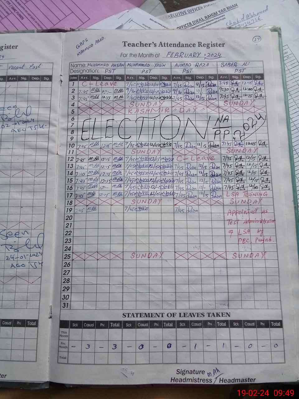 | Attendance Register | Head Teacher | MEA with School | Visit Proof |