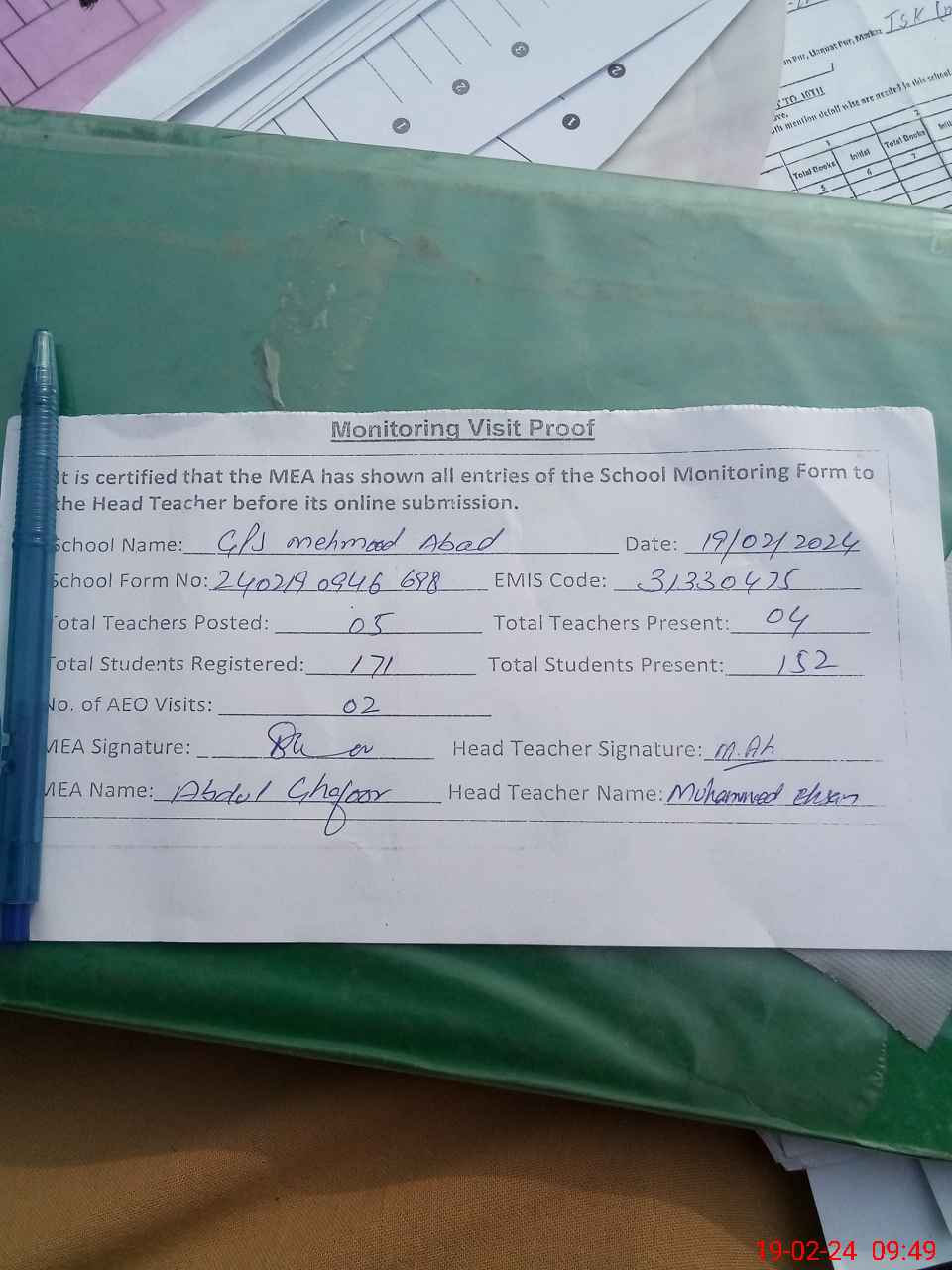 | EMIS Code: 31330475 | Name of School: GPS MAHMOOD ABAD | |||