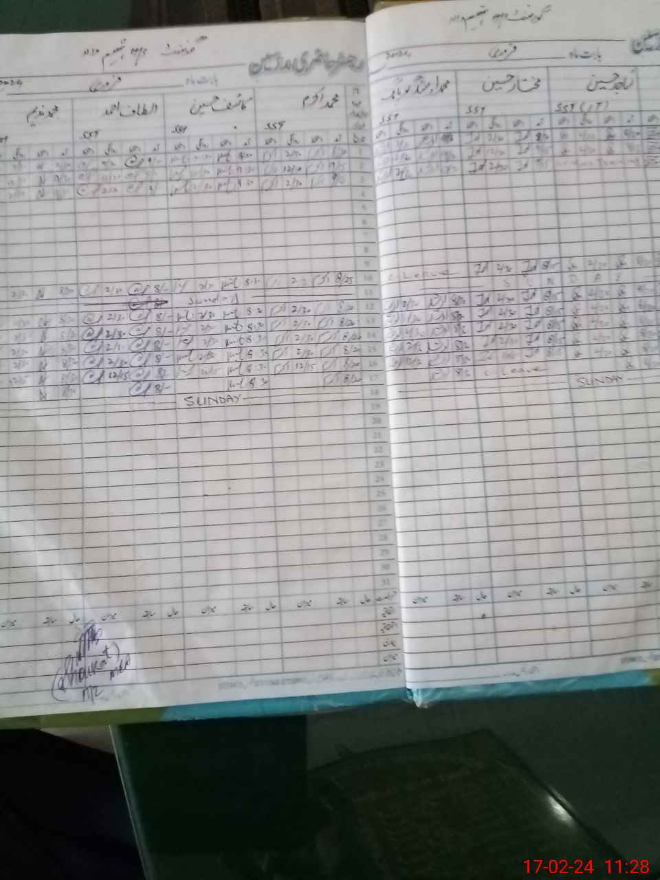 | CNIC | Full Name | Designation | R/C | Absence During Last Calender Month |
