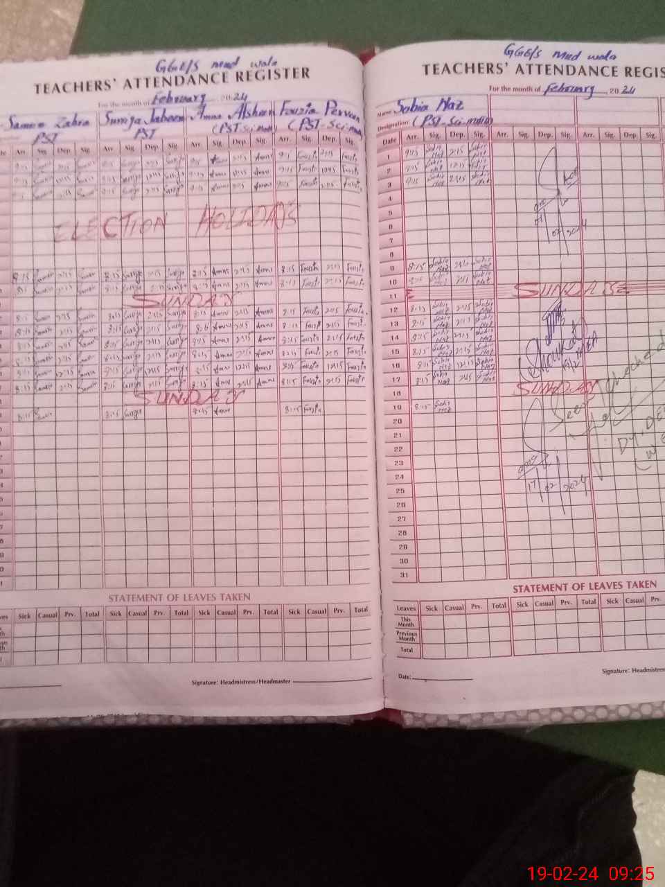 | Leave | Duty | Absent | Maternity | Medical | Ex- Pak |