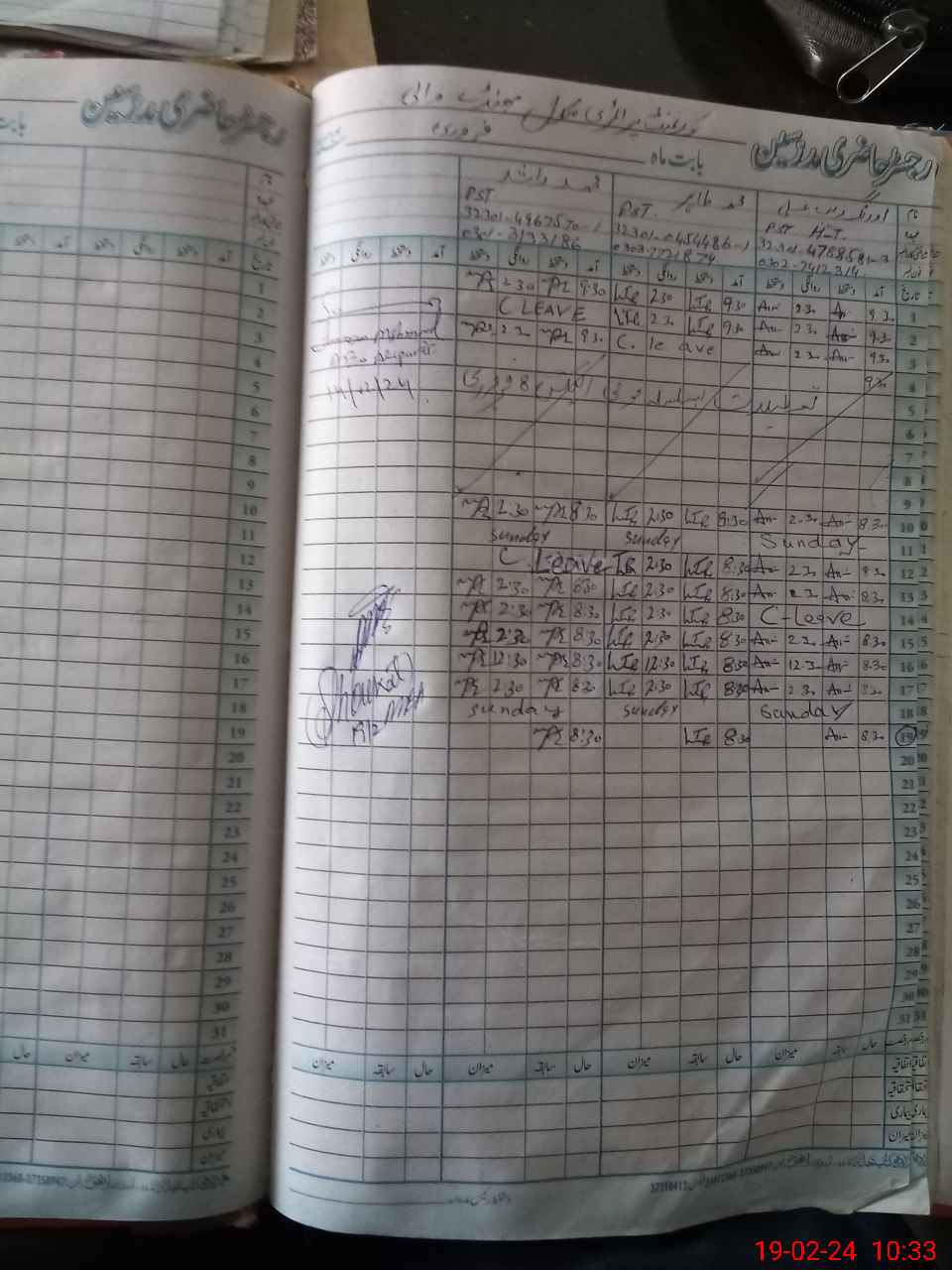 | CNIC | Full Name | Designation | R/C | Absence During Last Calender Month |