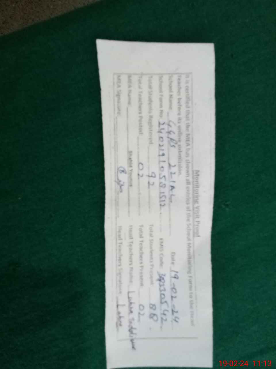 | Certified that this School was Inspected by the Undersigned MEA/DMO Today and the Information Stated Above is as Per Record. | |||||