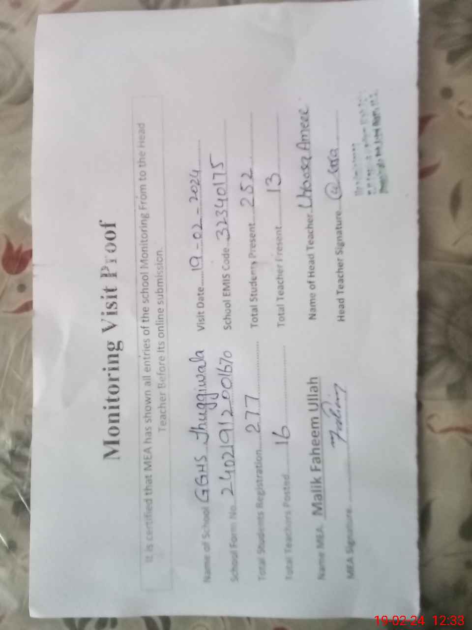 | EMIS Code: 32340175 | Name of School: GGHS JHUGGI WALA | |||
