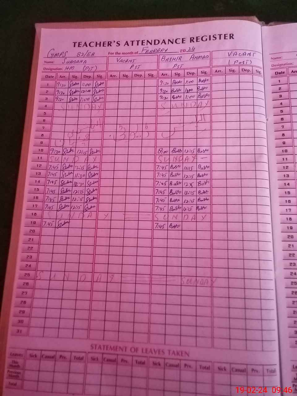 | Name: Sh**** Designation: (School Headmaster's/Headmistress's) PST Phone/Cell Number: 03**** |