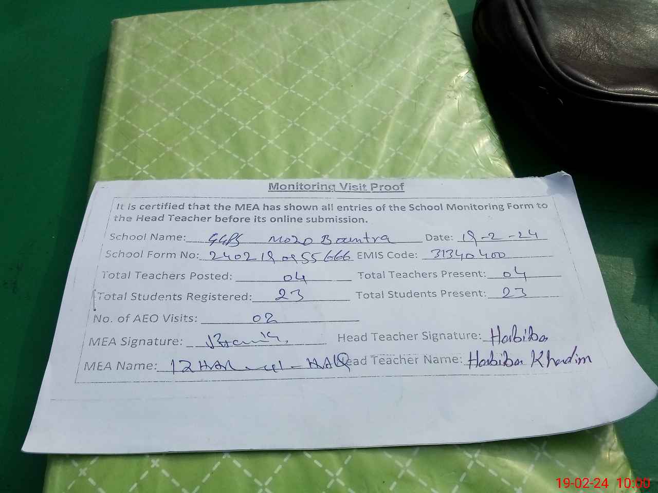 | Certified that this School was Inspected by the Undersigned MEA/DMO Today and the Information Stated Above is as Per Record. | |||||