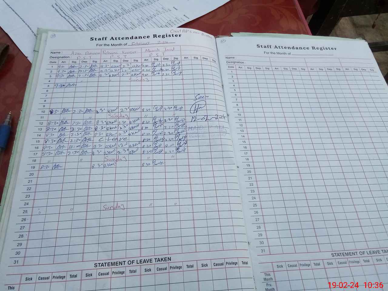 | Leave | Duty | Absent | Maternity | Medical | Ex- Pak |