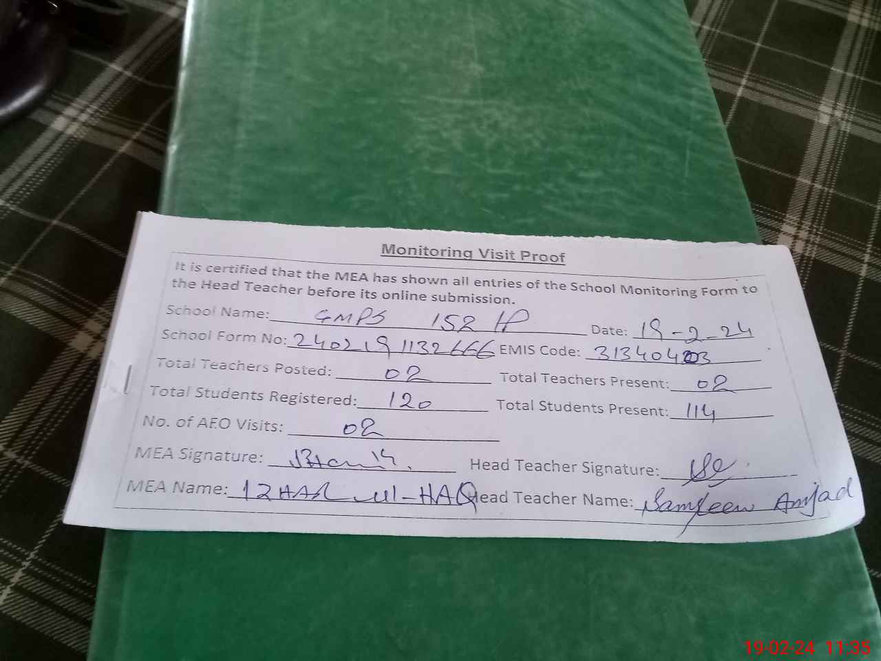 | Certified that this School was Inspected by the Undersigned MEA/DMO Today and the Information Stated Above is as Per Record. | |||||