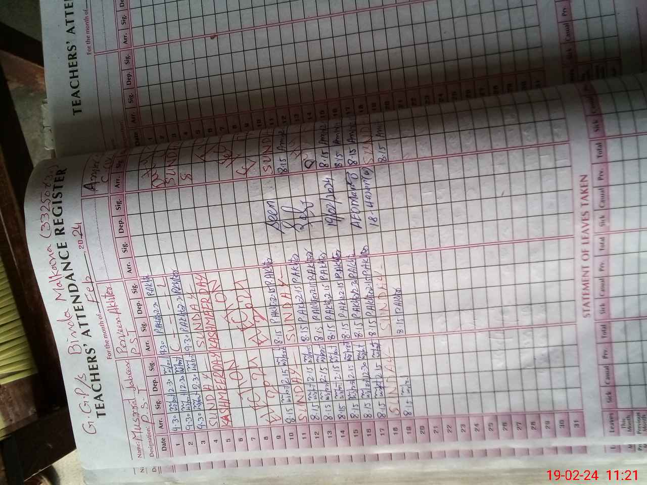 | Name: Mu**** Ja**** Designation: (School Headmaster's/Headmistress's) PST Phone/Cell Number: 03**** |