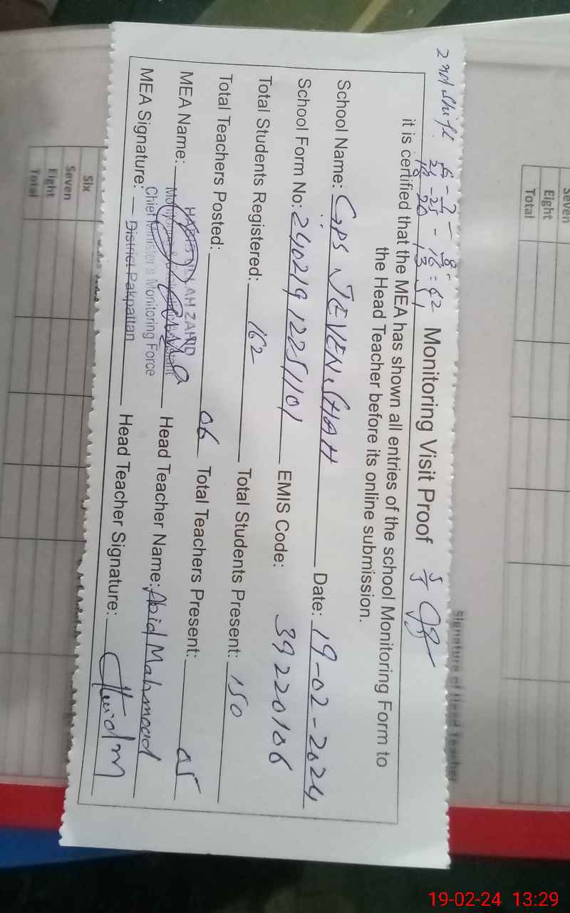| EMIS Code: 39220106 | Name of School: GPS JEVEN SHAH | |||