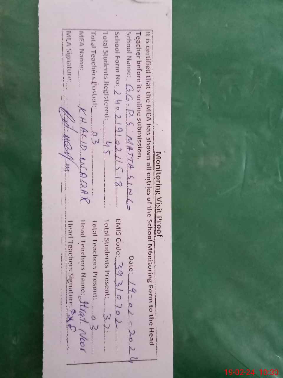 | EMIS Code: 39310702 | Name of School: GGPS MATA SINGH | |||