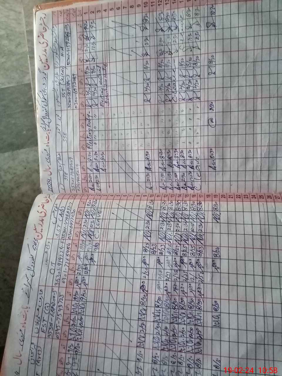 | CNIC | Full Name | Designation | R/C | Absence During Last Calender Month |