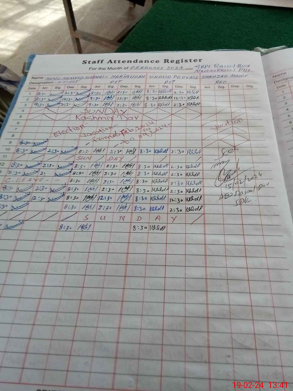 | Name: AB**** HA**** Designation: (School Headmaster's/Headmistress's) PST Phone/Cell Number: 03**** |
