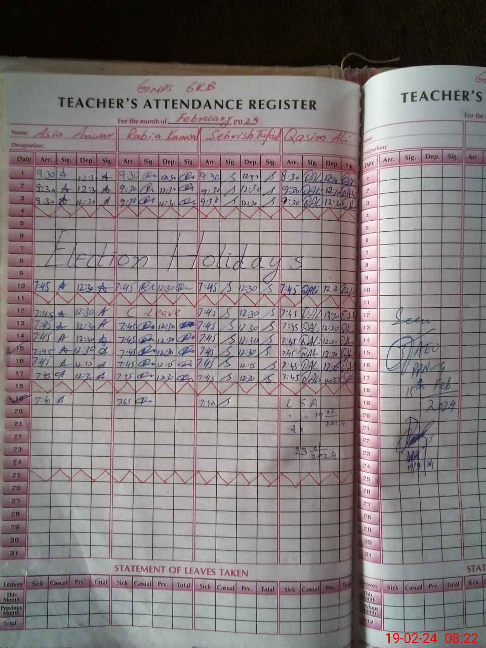 | Name: AS**** AN**** Designation: (School Headmaster's/Headmistress's) PST Phone/Cell Number: 03**** |
