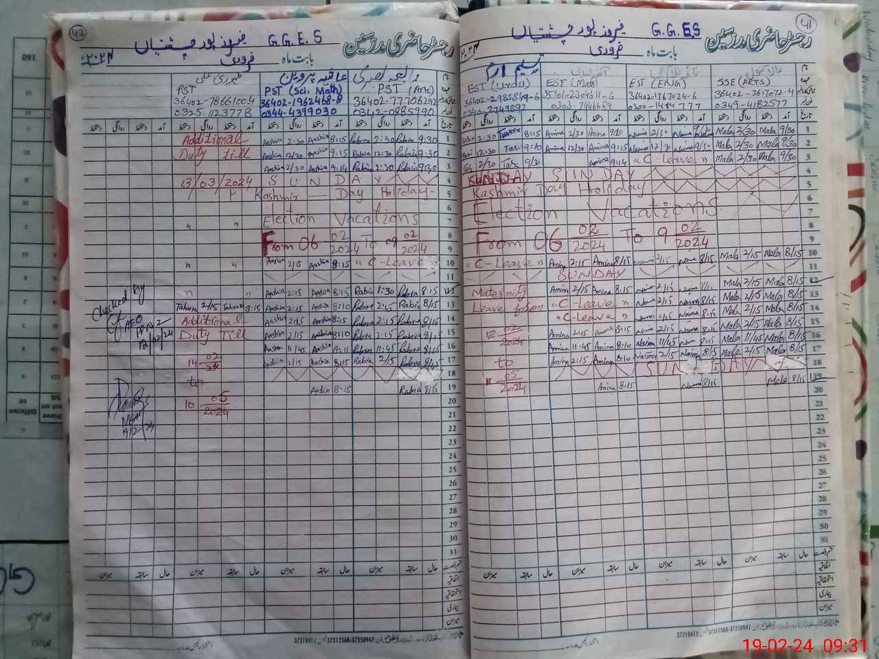 | Leave | Duty | Absent | Maternity | Medical | Ex- Pak |