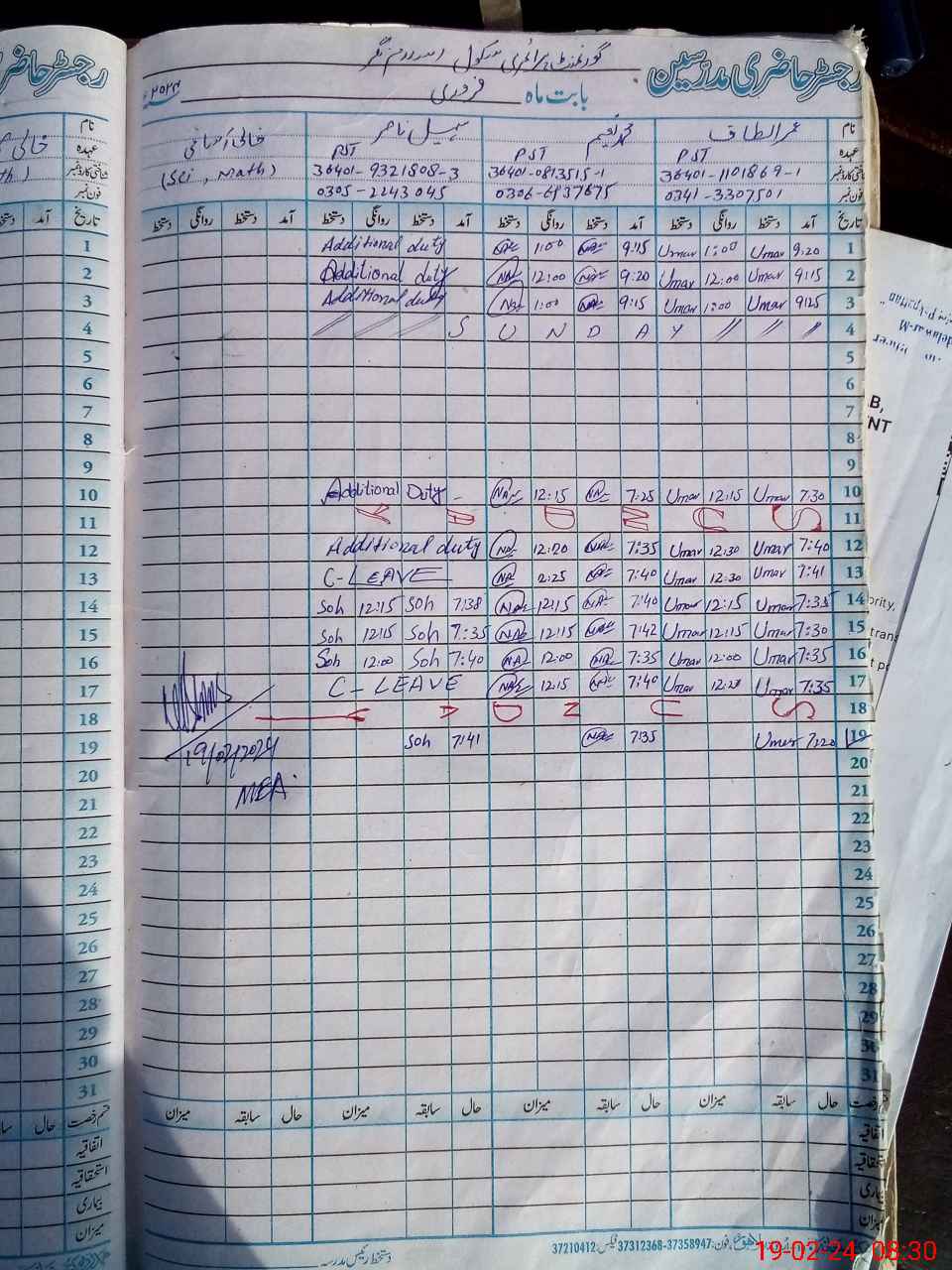 | Name: UM**** AL**** Designation: (School Headmaster's/Headmistress's) PST Phone/Cell Number: 03**** |