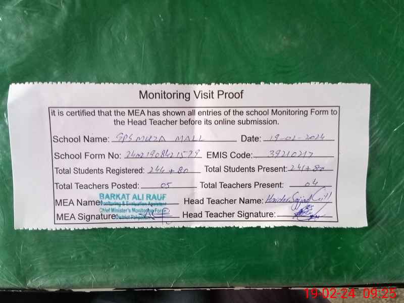 | EMIS Code: 39210217 | Name of School: GPS MOUZA MALL | |||