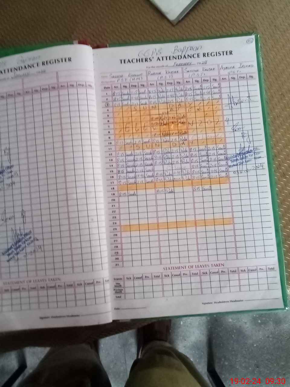 | 31**** | Ay**** Ir**** | 1 | 1 | 0 | 0 | 0 | 0 | 0 | 0 | 0 | 0 | 0 | Absent (Un-Authorized) |