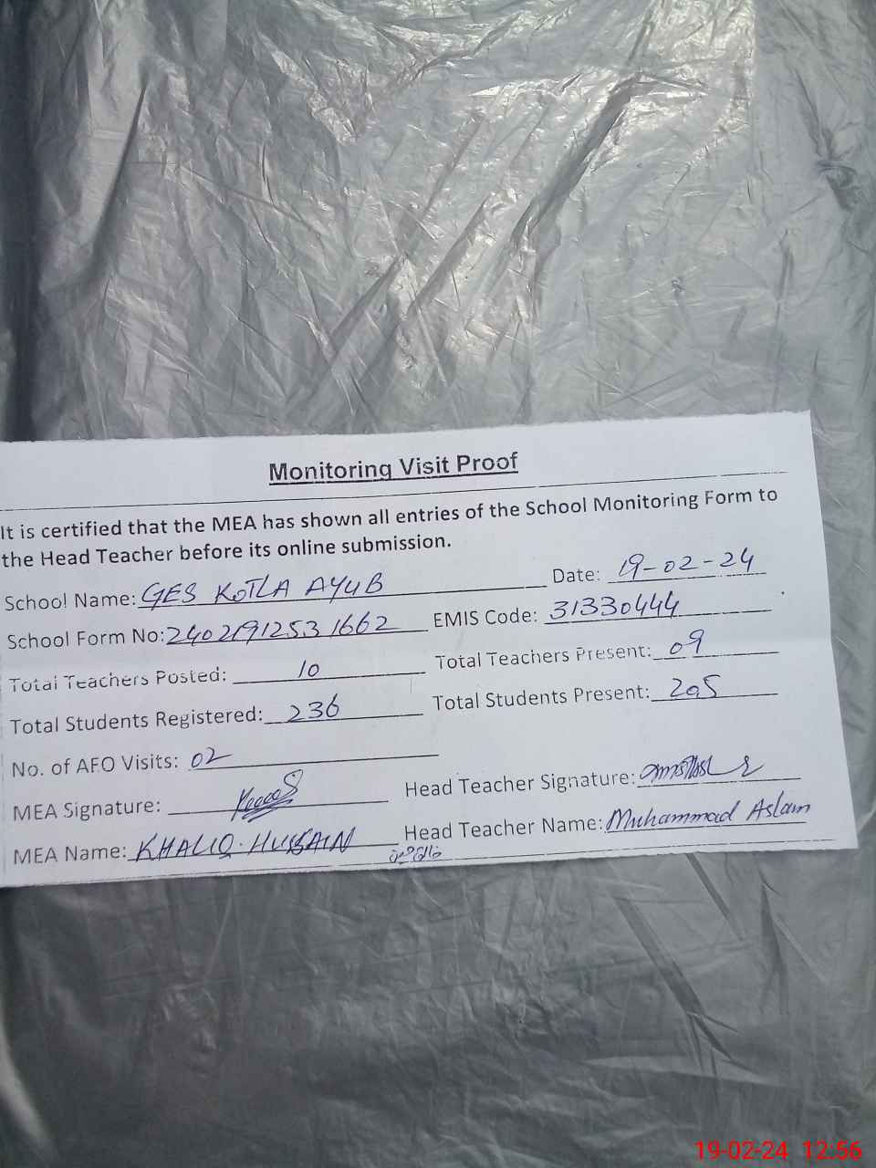 | EMIS Code: 31330444 | Name of School: GES KOTLA AYYUB | |||