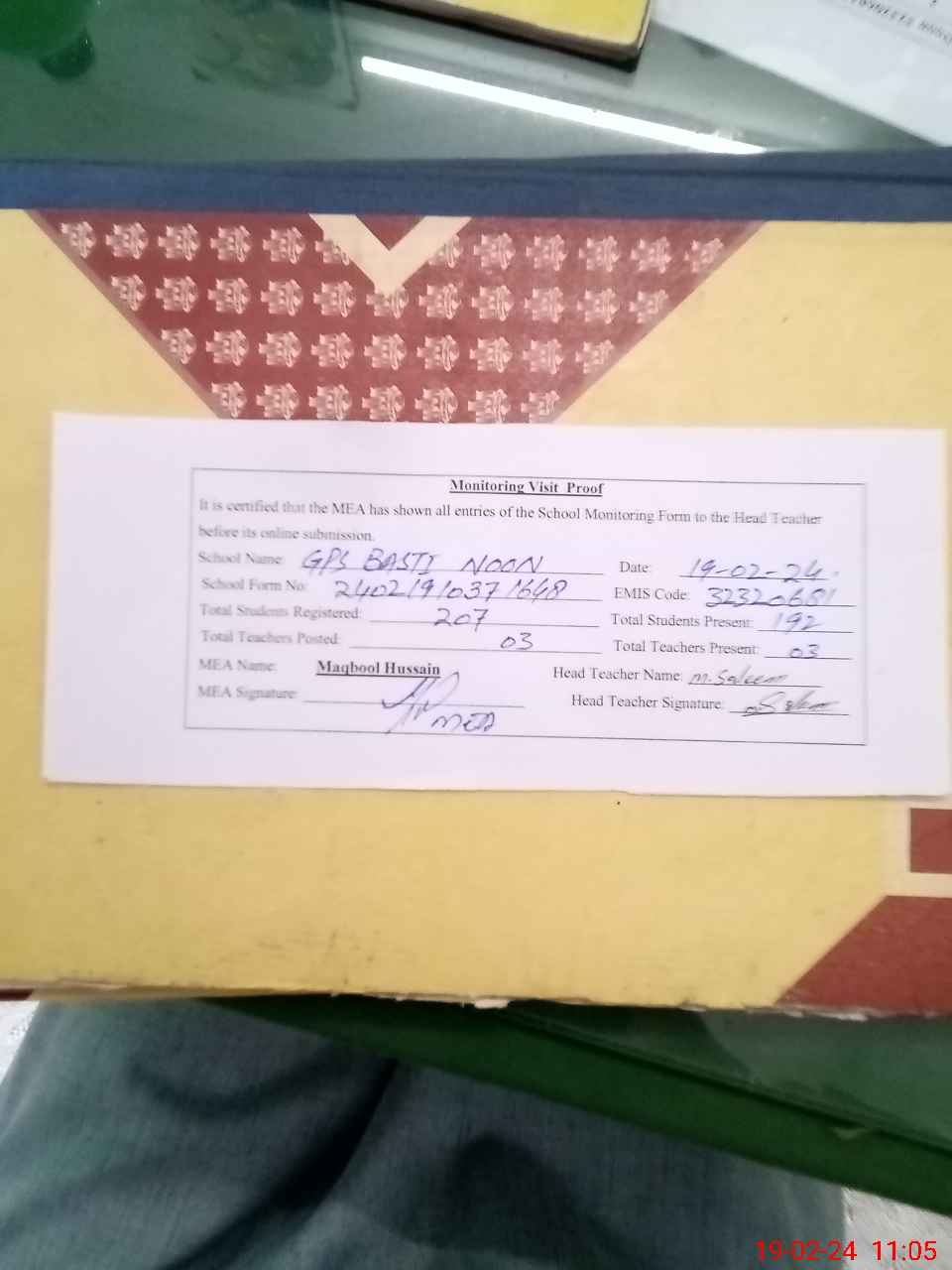 | EMIS Code: 32320681 | Name of School: GPS BASTI NOON | |||