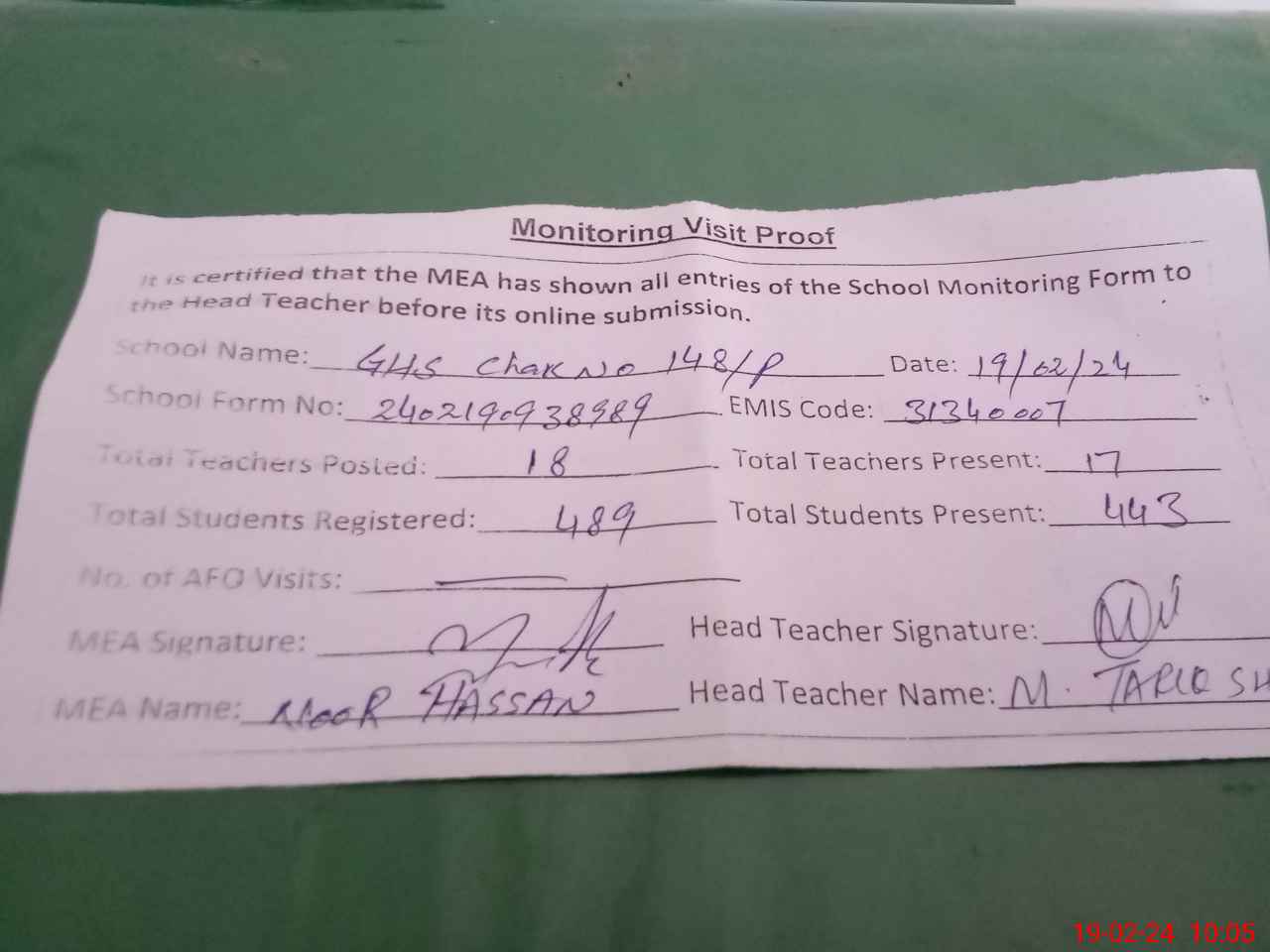 | EMIS Code: 31340007 | Name of School: GHS CHAK NO. 148/P | |||