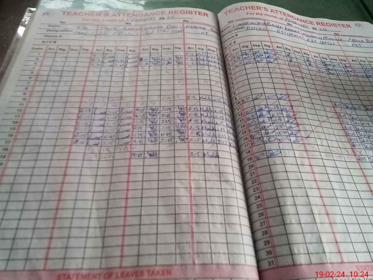 | CNIC | Full Name | Designation | R/C | Absence During Last Calender Month |