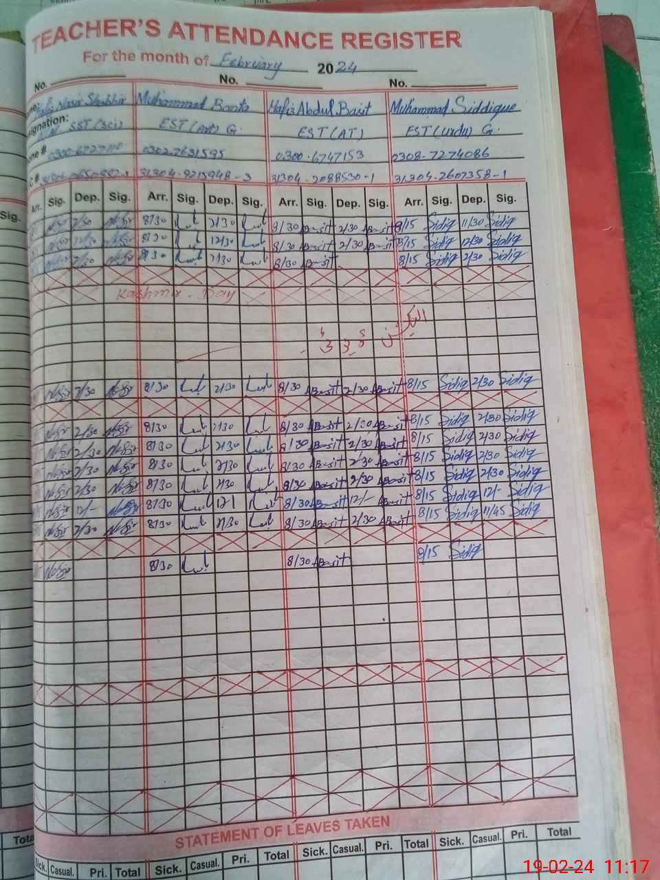 | 31**** | Mu**** Qa**** | PST | Regular | 2 | 0 | 0 | 0 | 0 | 0 | 0 | 0 | 2 | Casual |