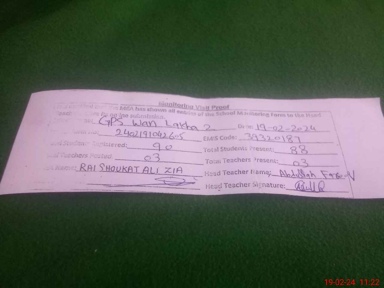 | EMIS Code: 39320187 | Name of School: GPS WAN LAKHA NO 2 | |||