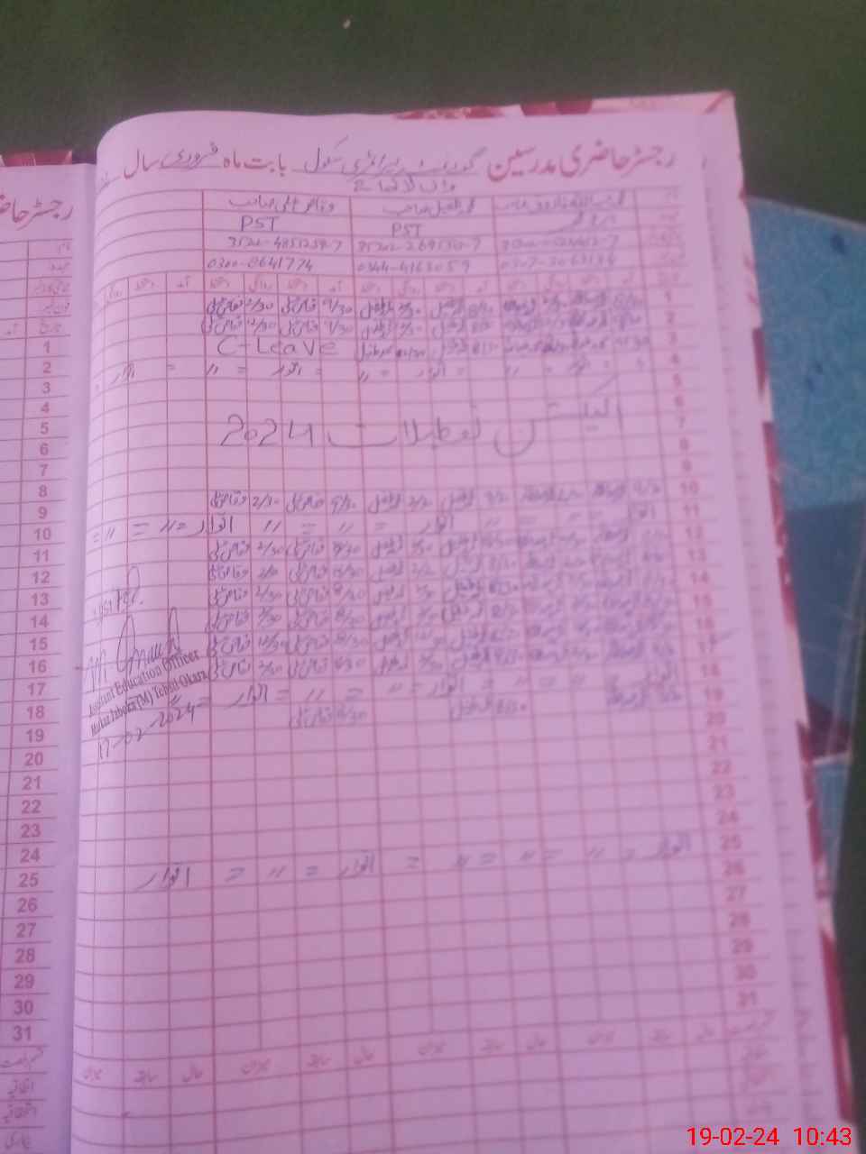 | Name: AB**** FA**** Designation: (School Headmaster's/Headmistress's) PST Phone/Cell Number: 03**** |