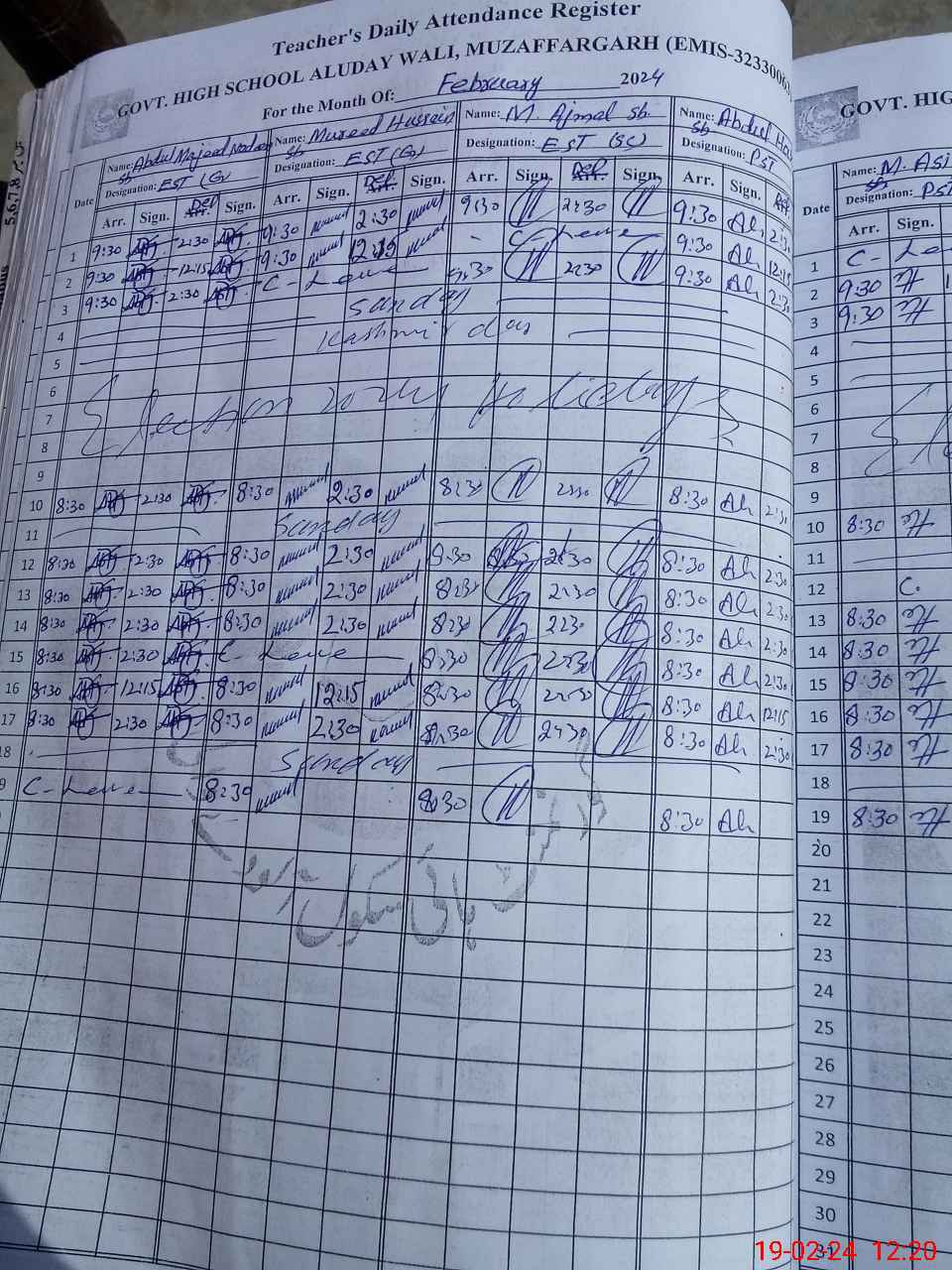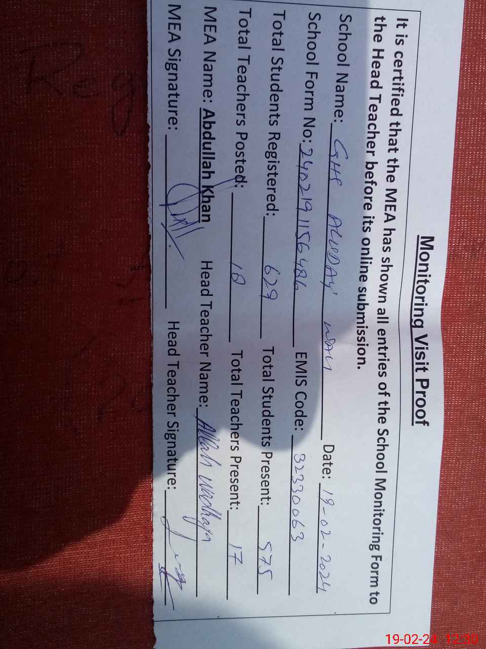 | EMIS Code: 32330063 | Name of School: GHS ALODAY WALI (AGRO TECHNICAL) | |||