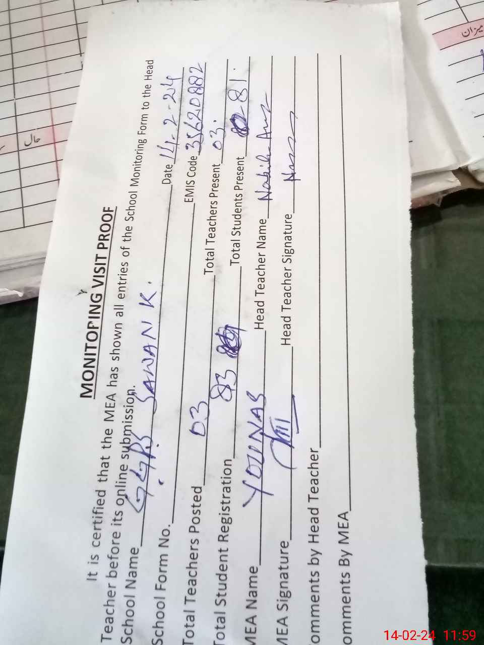| EMIS Code: 35620882 | Name of School: GGPS SAWAN KA | |||
