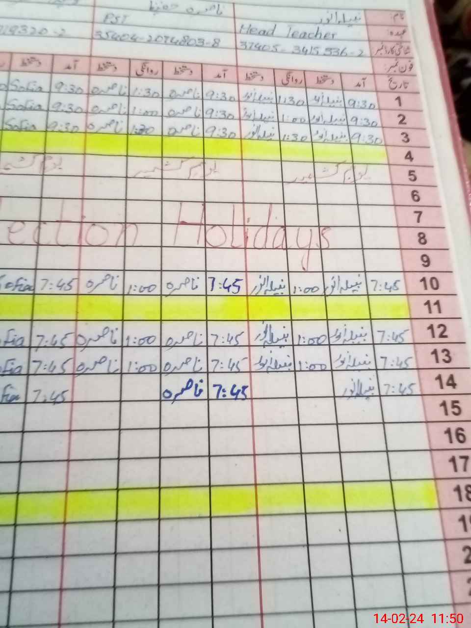 | Name: NA**** AN**** Designation: (School Headmaster's/Headmistress's) PST Phone/Cell Number: 03**** |