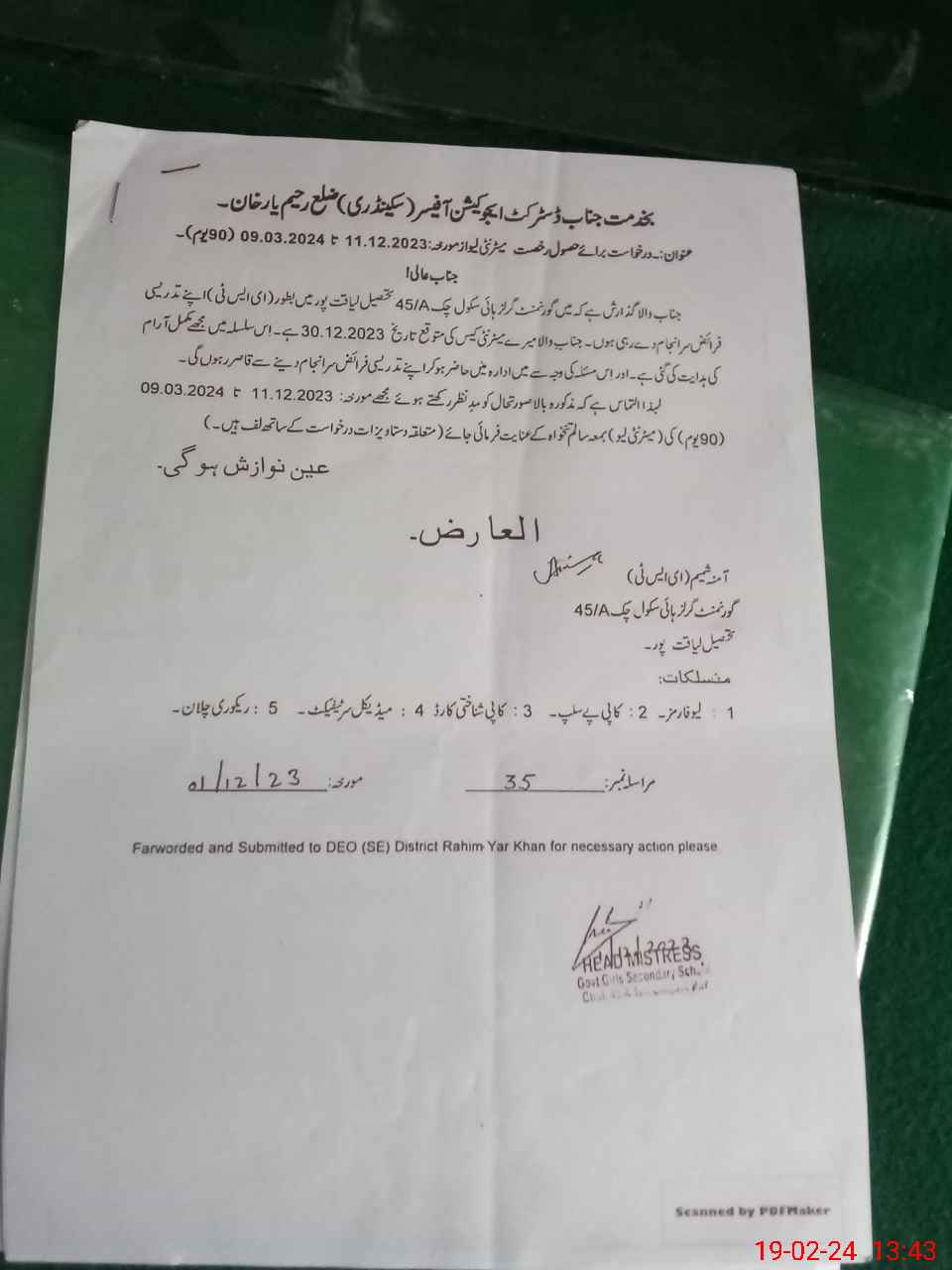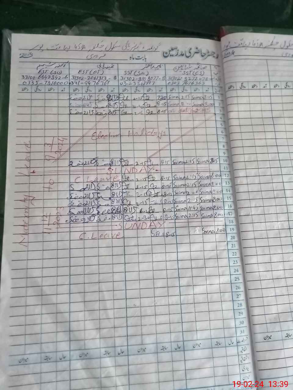 | Name: SA**** SH**** Designation: (School Headmaster's/Headmistress's) SST (Comp Sc) Phone/Cell Number: 03**** |