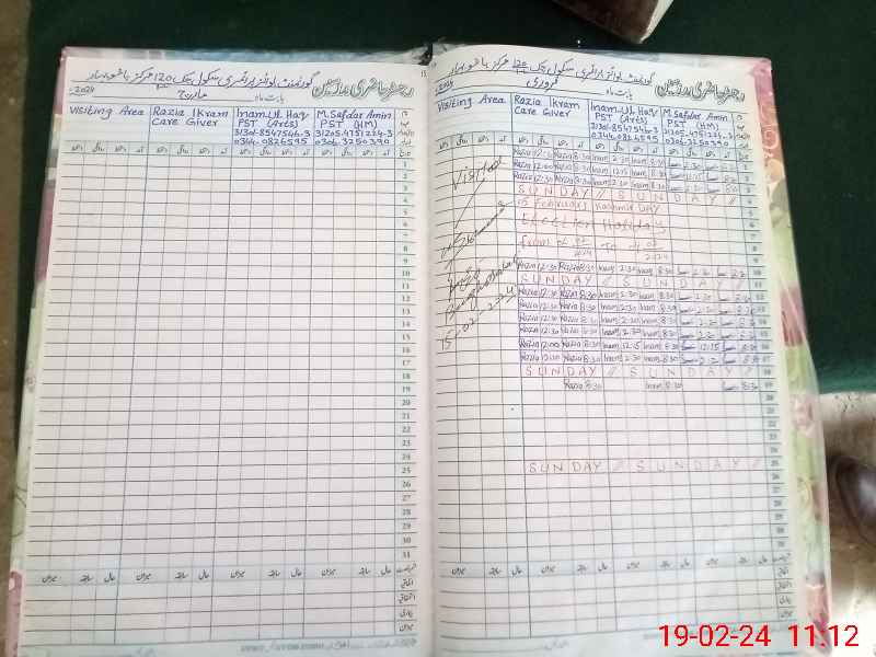 | School Visited by School Health & Nutrition Supervisor (No. of Visits) | Name1: | M Younas | Name2: | ||
