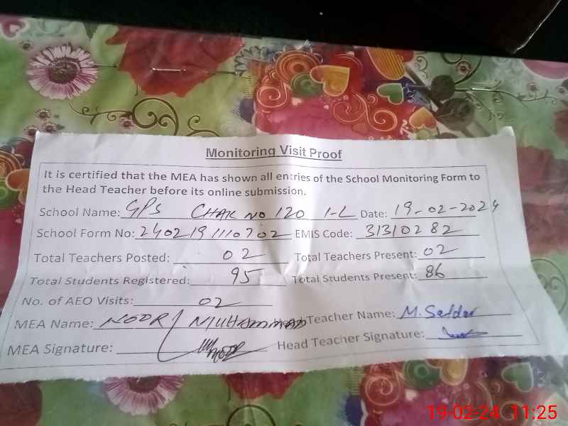 | EMIS Code: 31310282 | Name of School: GPS CHAK 120/1-L | |||