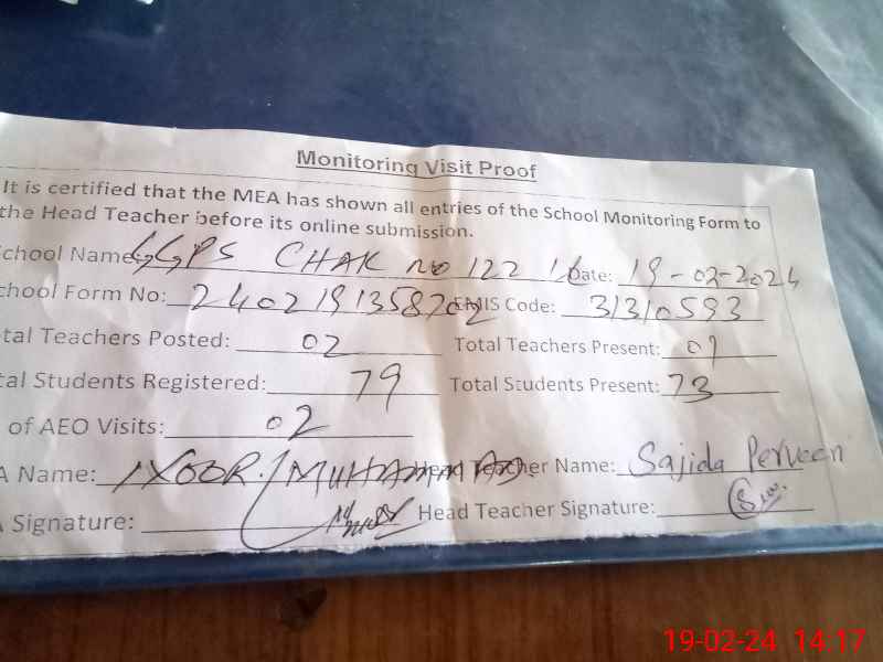 | Certified that this School was Inspected by the Undersigned MEA/DMO Today and the Information Stated Above is as Per Record. | |||||